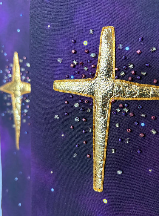 Sold outDeep purple starry clergy stole, 47"